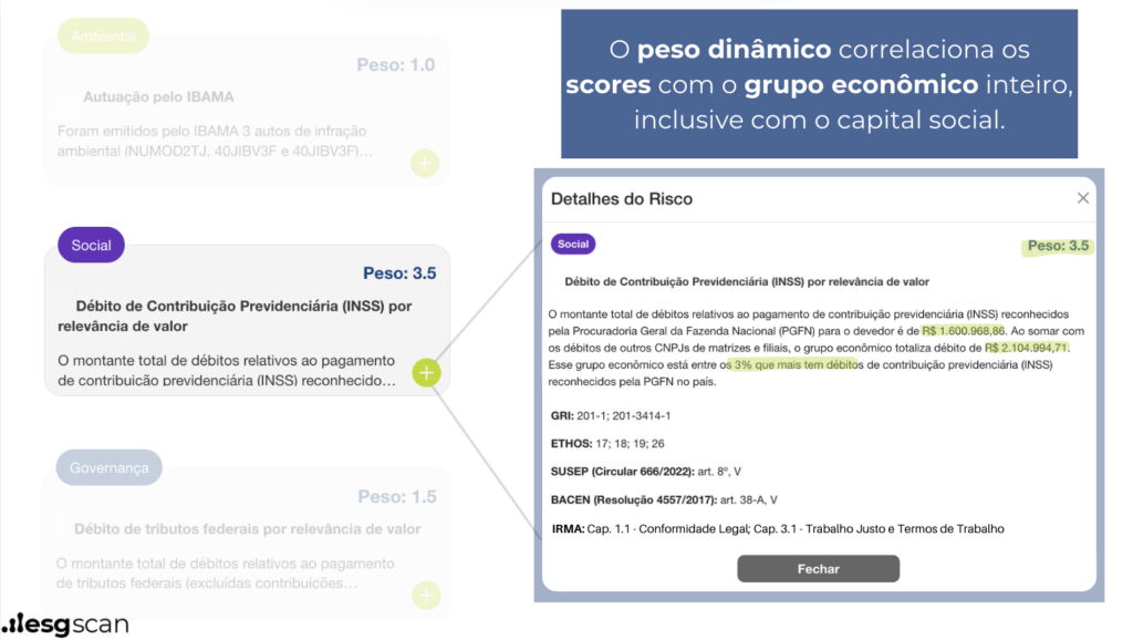 Além disso, o Score da ESGscan é detalhado, sendo possível obter informações precisas sobre as pontuações, garantindo transparência para o processo decisório da empresa.